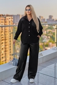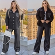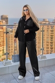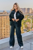 Стильний костюм з еко-шкіри та вельвету — поєднання комфорту й тренду. Вільний крій та універсальний дизайн підходять як для щоденних образів, так і для виходів у місто.