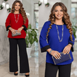 Костюм "ТІМ-2019"Розмір: 50-52,54-56 ,58-60.Колір: електрик, беж, червоний.Тканина креп дайвинг .Жіночий трендовий костюм, що складається з блузи та штанів. Блуза вільного силуету, виріз горловини округлий. Штани із завищеною талією, вільної форми, вигідно підкреслюють витонченість ніг та надають fashion нотці образу. Зручна в носінні тканина, гарна посадка по фігурі, універсальність і лаконічність моделі не залишать байдужою жодну жінку.