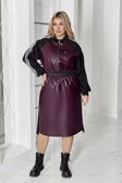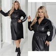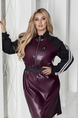 Сукня " АЛ-1045" Розміри - 48-50, 52-54, 56-58. Тканина: Еко- шкіра гарної якості + Итальянский три.ж + лампаси + блискавка Фактичні виміри:За 52-54 розміром. Довжина від плеча спереді- 109 см.Довжина позаду- 112 см.Рукава від горловини - 72 см. ОГ - 116 см. ОТ- 84 см. Обьем стегна- 124 см.