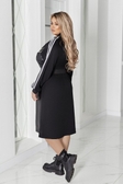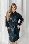 Зріст моделі 170см.На моделі одягнений: 52-54 розмір. Параметри моделі на момент зйомки:БЛОНДИНКА:ОГ- 115 см.ОТ- 83 см.ОБ- 120 см. ФАСОН ТА ДЕТАЛІ: Сукня у спортивному стилі з ефектом двох матеріалів.Верх із застібкою-блискавкою, коміром-стійкою і лампасами на рукавах.Силует напіввільний, на талії приталений завдяки широкій еластичній резинці. Довжина міді, спереді коротша- позаду подовжена. Важливо знати: Еко- шкіру можна прасувати лише на зворотній стороні виробу.ДОДАТКОВІ ХАРАКТЕРИСТИКИ: Комбінована тканина: еко-шкіра + Італійський три.ж — м’яка, еластична, комфортна в носінні.Поєднання глянцевої фактури з матовими вставками створює стильний контраст. лампаси додають сукні сучасного стилю, в поєднанні шкіри та три.жу. Ідеально підходить для сучасного casual-look з кросівками або черевиками.