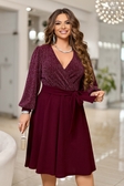 Сукня "ТІМ-6549", з люрексом Розмір: 50-52, 54-56, 58-60, 62-64.Колір: синій, чорний, марсал, зелений.Тканина про-во Туреччини: креп дайвінг, креп- трикотаж з люрексом.Елегантне жіноче плаття, виконане з кріп дайвінгу (тягнеться) з люрексом. Перед сукні з імітацією запаху. До сукні додається знімний пояс із основної тканини. У такій сукні будь-яка жінка зможе відчути себе справжньої леді та королевою вечора, ця сукня здатна надати жінці ніжності, легкості та елегантності.Виміри:РОЗМІР 50-52:Сукня: дв. 105 см, рукав 60 смОГ-110 см,