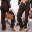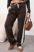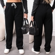 ОТ 100 / 110 / 120 смОС 120 / 132 / 144 смДовжина 110 / 112 / 113 смДовжина внут 79 / 80 / 81 смІдеальні штани для комфорту та стилю зі зручними кишенями! Тринитка на флісі — м’яка, тепла та приємна до тіла Контрастні білі лампаси візуально видовжують ніжки, створюючи ефект стрункої та витонченої фігури