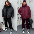 Тепла Зимова куртка "ШМ-1627",оверсайз ( обʼємна)Капюшон зʼємнийКуліски, можно моделювати куртку по різномуНаповнювач: синтепух 250Розміри: 48-52;54-58кольори: чорний, бургунді, шоколад та сірий