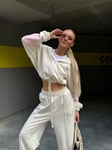 Кофта на блискавці, шви акуратно закриті планкою. Довжину кофти можна регулювати шнурком .