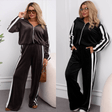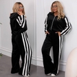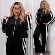 Спортивний костюм "СВІТ-211"Розміри : 50-52 / 54-56 / 58-62Тканина : якісний велюр Кольори : чорний,темно -синій,шоколадМодний та зручний комплект із м’якого велюру. Складається з кофти на блискавці з капюшоном та широких брюк палацо із високою талією . Є кишені для зручності і в кофті ,і в штанах.Костюм прикрашений контрастними білими смугами вздовж рукавів і штанів, що додає образу динамічності та візуально подовжує силуетТканина має добру розтяжність , приємна до тіла