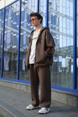Підлітковий костюм "ЕВГ-2511", ОВЕРСАЙЗ Тканина - турецька хб тринитка піньє з щільним начосом (дуже теплий) високої якості не линяє, не скочується, гарно тримає форму. Високої якості пошиття. Слад: 85% бавовна, 10% віскоза, 5% еластанШтани прямі , в поясі резинка та шнурок який допомагає коригувати об'єм .Капюшон зі шнурком. Розміри - 152-158,158-164,164-170, 170-176 Колір- графіт,чорний, коричневий Стильний та якісний малюнок.