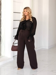 Ці стильні штани із костюмної тканини ідеально підійдуть для створення елегантного та комфортного образу. Вільний крій із широкими брюками візуально витягує силует, а м'який матеріал забезпечує зручну посадку. Висока посадка із защипами додає елегантності та підкреслює талію. Ідеально поєднуються як із класичними туфлями, так і з кедами для більш розслабленого стилю. Відмінний вибір для офісу, прогулянок чи особливих випадків! Штани мають кармани, застібка- блискавка та ґудзик. По спинці на талії іде резинка для кращої посадки.