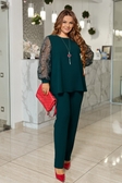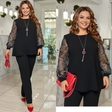 Костюм "ТІМ-7151"Розмір: 50-52, 54-56, 58-60.Колір: чорний, бордо, синій, зелений.Тканина: креп-дайвінг, флок на сітці .Неймовірно жіночний образ. Костюм складається з блузи та штанів. Блуза по спинці застібається на гудзик. Окрасою служать широкі рукави, виконані з сітки із сріблястим напиленням, що створює делікатне мерехтіння.Костюм підкреслює Ваш статус та чудовий смак.