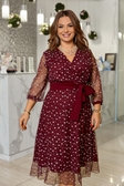 Сукня "ТІМ-5744"Розмір: 50-52, 54-56, 58-60.Колір: зелений, бордо, беж, чорний.Тканина: креп дайвінг, флок на сітці.Елегантне жіноче плаття, виконане з кріп дайвінгу (тягнеться) і сітки з блиском. Перед сукні з імітацією запаху. До сукні додається знімний пояс із основної тканини. У такій сукні будь-яка жінка зможе відчути себе справжньої леді та королевою вечора, ця сукня здатна надати жінці ніжності, легкості та елегантності.Виміри:РОЗМІР 50-52:Сукня: дл. вид. 112 см, рукав 47 смОГ-110 см, ВІД-90 см.