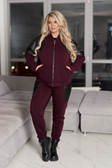 Бомбер: Силует — прямий, комфортний. Рукав — “напівкажан”, із м’якою лінією плеча для зручної посадки та свободи рухів. Комір — стійка. Застібка — блискавка по центру. Кишені з боків із листочками. Вставки з екошкіри чорного кольору додають стилю та контрасту.Штани: Висока посадка, зручна форма. Пояс на еластичній резинці, з кишенями. З боків декоративні вставки з екошкіри, додають візуально стрункості . Низ прямий, без манжет.