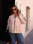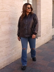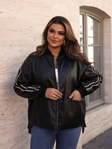 Куртка вільного крою в стилі бомбера. На рукавах присутні спортивні лампаси, що надає образу більш динамічного та стильного вигляду. Манжети та нижня частина куртки виконані з гумки в тон основного кольору. Куртка має зручні бічні кишені і виглядає комфортно та універсально - її легко поєднувати як з повсякденним, так і з більш спортивним стилем