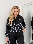 Костюм спорт шик, вдала комбінація однотону з принтом, робить виріб витонченим та оригінальним, привертає погляди. Лампас на штанах, низ рукавів та низ кофти прикрашені принтом, горловина стійка на молнії з карабіном ( прикрашений буквами), на грудях накат з камінцями,по низу кофти шляпна резинка з фіксаторами ( можна регулювати обʼєм). Штани на широкій резинці, з боків кишені. Костюм цікавого крою : планочка на грудях спереду та ззаду, підкреслює ваші принади та приховує зайві обʼєми на талії.