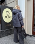 Ця стильна куртка виконана з плащової тканини лаке, що забезпечує її водовідштовхувальні властивості та легкий блиск, ефектний зовнішній вигляд. Куртка має стьобаний дизайн з ромбоподібним візерунком, капюшон для додаткового захисту від вітру та застібається на зручну блискавку. Практичні бічні кишені доповнюють функціональність моделі, роблячи її ідеальною для повсякденного носіння та прогулянок. Виміри виробу: