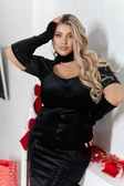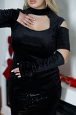 ДОДАТКОВІ ХАРАКТЕРИСТИКИ: Тканина: велюр із впаяною паєткою. Декор: блискітки по всій поверхні. Горловина: стійка, цільнокроєна. Рукава: пришиті, з розрізами на плечах. Посадка: облягаюча, еластична. Стиль: вечірній, святковий, гламурний Кольори виробу:ЧОРНИЙ.