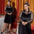 ДОДАТКОВІ ХАРАКТЕРИСТИКИ: Тканина: велюр із впаяною паєткою — м’який, не дряпає і тримає форму. Сітка з мікропаєткою — м’яка, акуратна, не колеться. Поєднання двох фактур виглядає преміально. Ідеальна сукня для свят, корпоративів, Нового року, вечірок та красивих фото. Легко комбінується з каблуками, клатчем і яскравими сережками. Кольори виробу: Чорний.